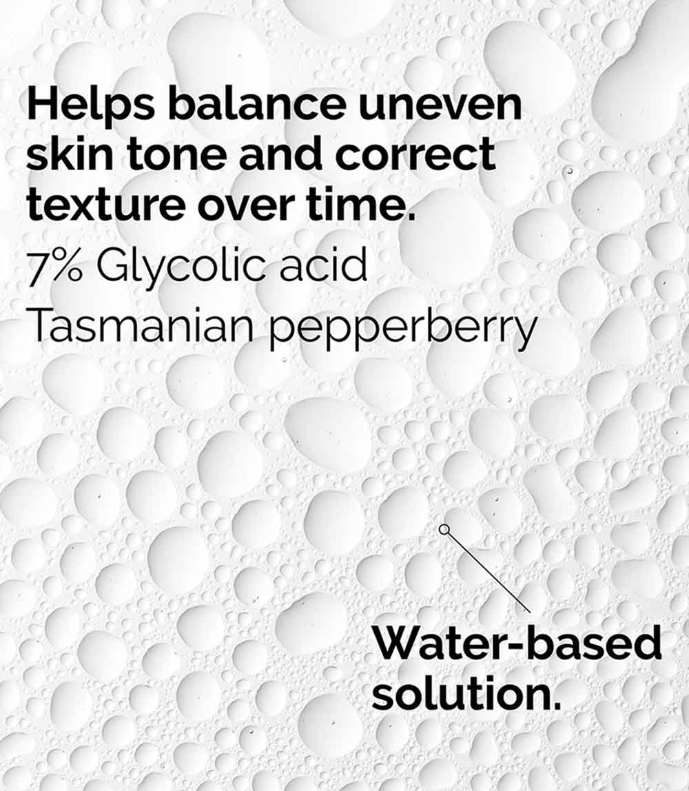 Improve skin texture with The Ordinary Glycolic 7% Toning Solution, a nourishing skincare treatment containing Tasmanian pepperberry derivative to help reduce inflammation. This solution also contains ginseng root and aloe vera to enhance radiance and offer soothing benefits.